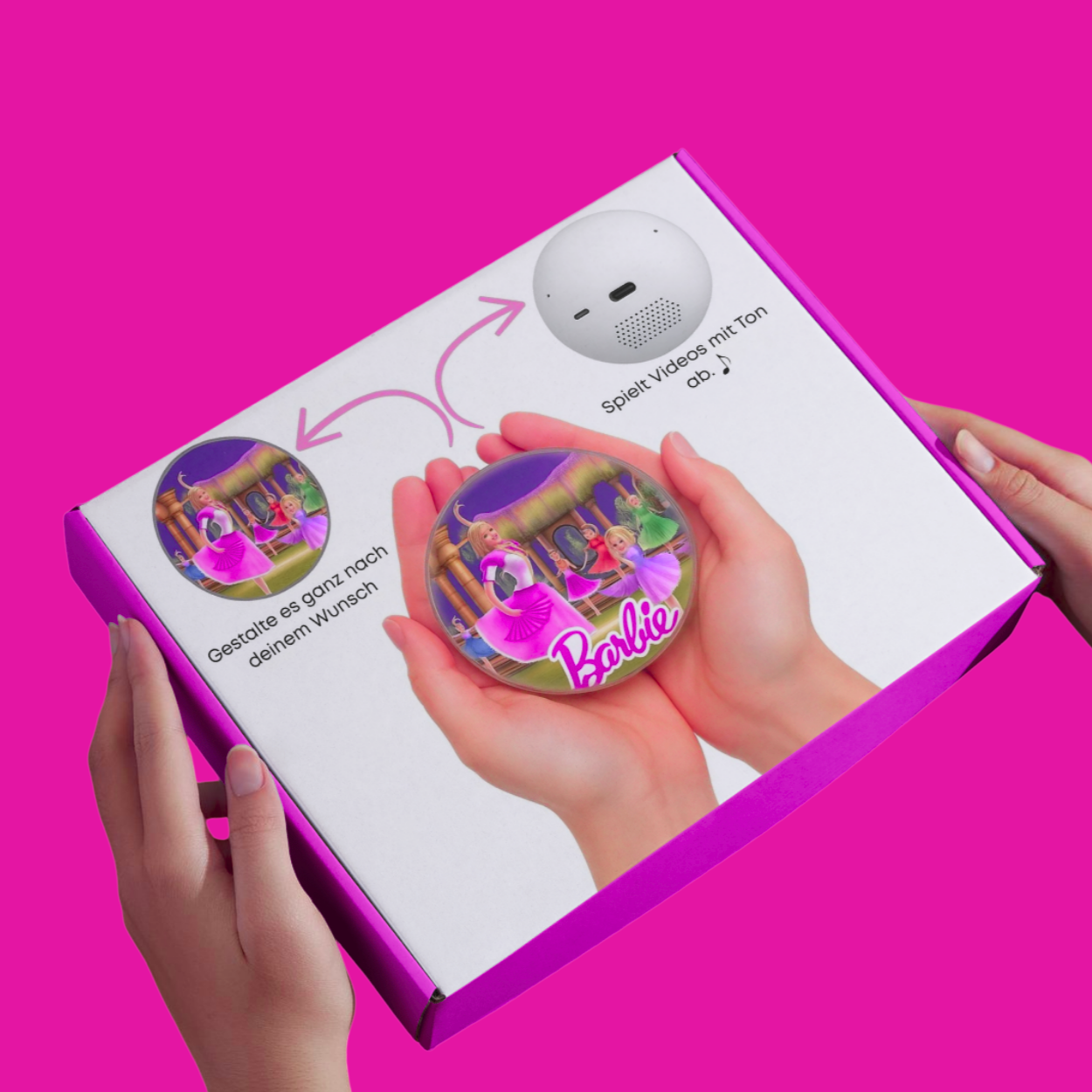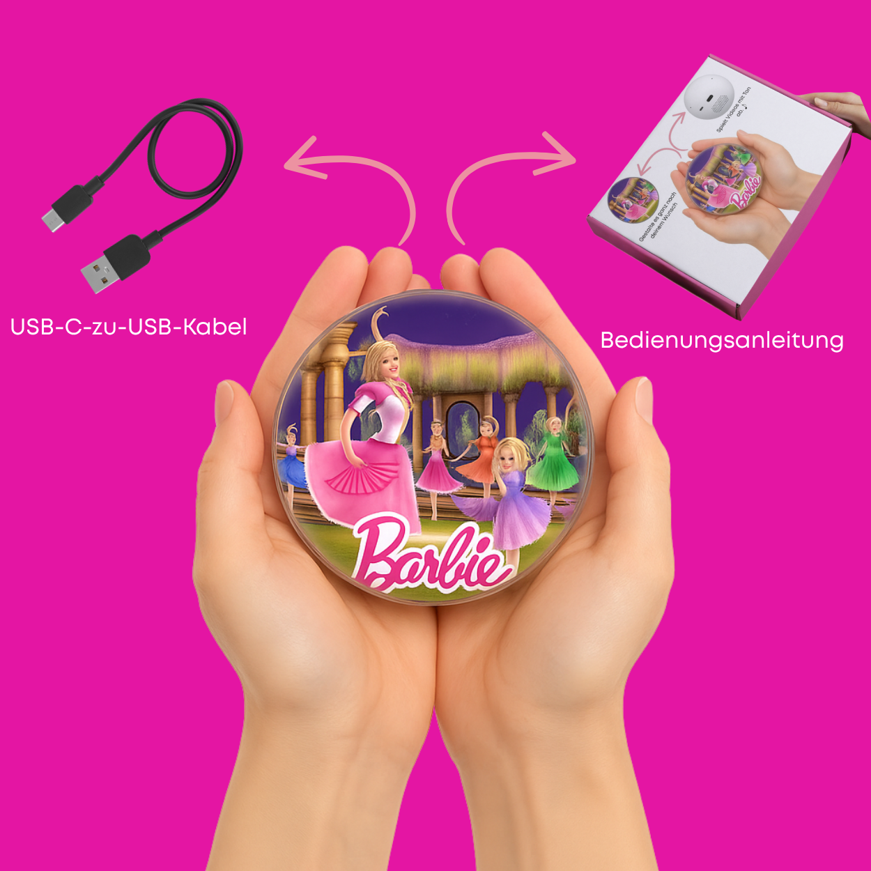 Deine DreamSphere, ein USB-C-zu-USB-Kabel und eine kurze Bedienungsanleitung.